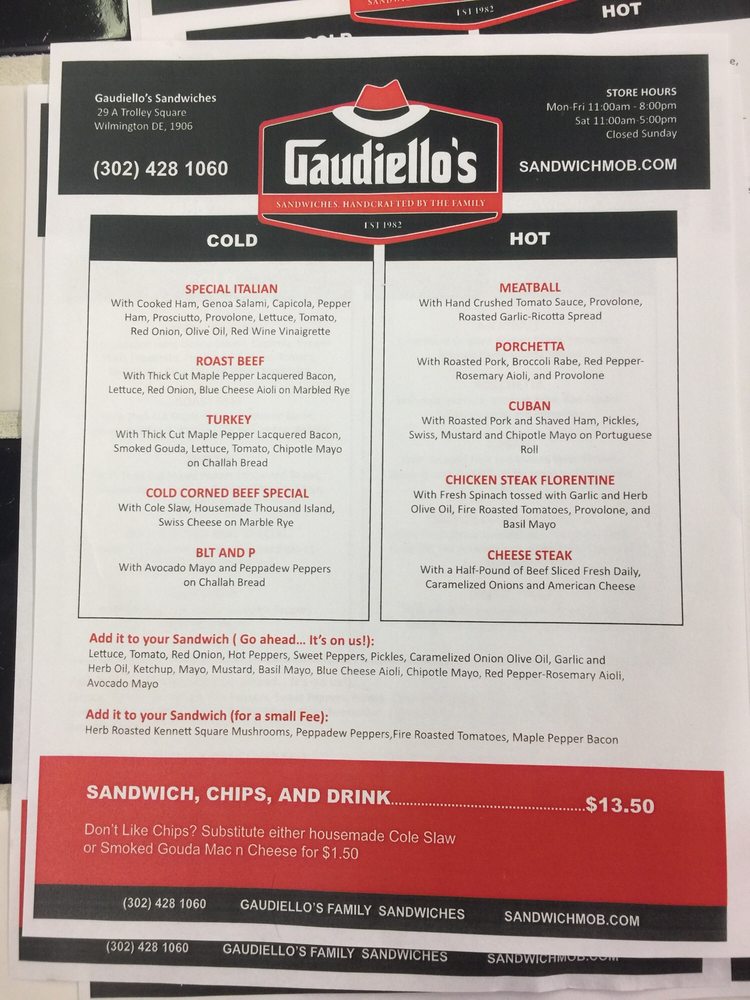 Welcome to Gaudiello's Italian Hoagies, a hidden gem nestled in the heart of Wilmington, Delaware. Located at 29A Trolley Square, this vibrant eatery specializes in authentic Italian sandwiches that transport you straight to the streets of Italy with every bite. The inviting atmosphere and friendly staff create a warm ambiance, perfect for a quick lunch or a satisfying dinner.